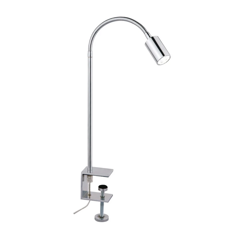 Functional Karen clip-on light with flexible light arm The Karen clip-on light is easy to operate and can be used anywhere. This is made possible by the flexible light arm, which has a robust clamping device. It can therefore be used on desks, for mounting in the hobby room or as a room divider in living or dining rooms. Simply operated via a power supply unit, no complex precautions necessary. The light rendition is warm white and corresponds to 2,850 K. The 45-degree lens is a special feature. The bulb is included and use is extremely economical thanks to LED technology. High quality standards are guaranteed by "Made in Germany" production. Complies with IP20 standards.