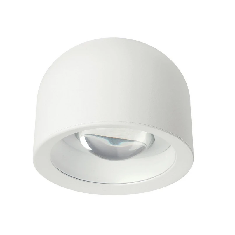 Outlook S LED downlight made of aluminium and glass, dimmable The Outlook S LED downlight is a ceiling spotlight for a modern and elegant ambience. With its impressive lighting effects, the downlight creates impressive lighting effects in the living area. A powerful LED light source is installed in the aluminium housing with white shrink lacquer and a diffuser made of transparent glass. The spotlight can be rotated through 350° and swivelled through 30° for maximum mobility and optimum alignment of the light, which is emitted at an angle of 45°.The Outlook S LED downlight is suitable for illuminating works of art and places of worship as well as living spaces and hotels.
