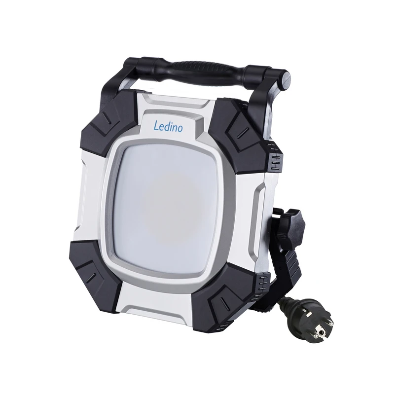 Allach 60 LED work light with adjustable light colour and 2-stage switch The Allach LED floodlight offers flexible lighting, as the light can be switched to three light colours: warm white lighting with 2,700 K, cool white light with 4,000 K or daylight with 6,500 K are available. In addition, the brightness can be switched in two stages. Two 230 V sockets and two USB ports are located at the back of the spotlight, which is equipped with brackets for standing and carrying. - Equipped with 3 m supply cable with plug - IP code IP54 - Die-cast aluminium housing - Glass diffuser - Impact resistance index IK08