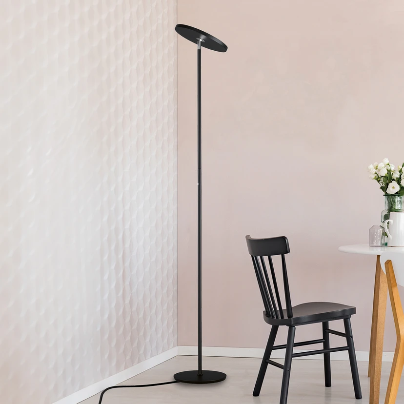 Elegance meets functionality: Bever LED floor lamp in black The Bever LED floor lamp impresses with its elegant, black design and versatile functions. Made of high-quality metal, it blends seamlessly into modern living spaces and sets stylish accents. Equipped with a practical push-button, the Bever enables continuous dimming so that you can adjust the brightness to suit your individual needs. Whether for relaxing evenings or concentrated work - the light always offers the right light intensity. A special feature of the Bever is the infinitely adjustable light colour (CCT). You can vary the light from warm white to daylight white and thus change the atmosphere in the room depending on the mood and occasion. This flexibility makes the Bever LED floor lamp an indispensable element in your home. With its combination of functionality and stylish design, the Bever LED floor lamp is the perfect choice for anyone who values high-quality lighting and an appealing ambience.