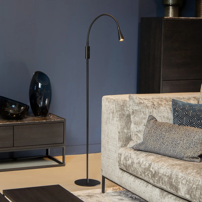 LED floor lamp Zozy, black, 3-StepDim, height 145 cm, flex arm