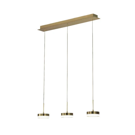 LED pendant light Dunk, brass, 3-bulb, 3,000 K, metal