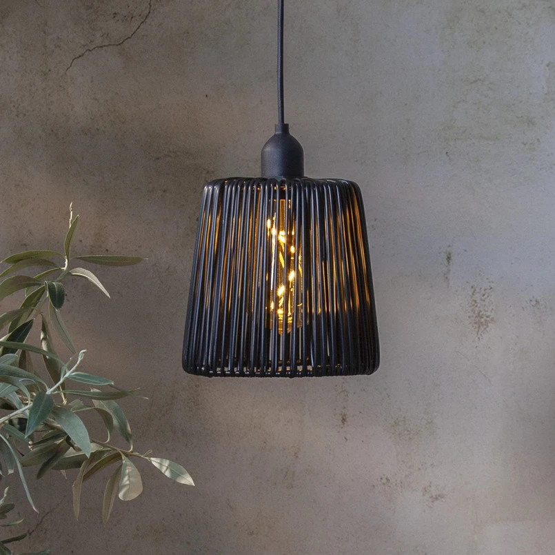 LED outdoor hanging light Twine black plastic Ø 15cm battery