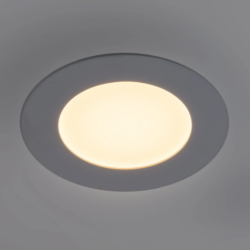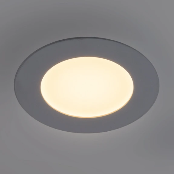 Powerful Lyon LED panel with a mounting height of just 3 mm The LED panel is round in shape and impresses with its high-quality aluminium housing in silver. The light-emitting surface, which takes up most of the luminaire, radiates the light from the built-in LEDs over a large area into the room. The soft, uniform light makes the panel particularly interesting for corridor areas, but also for use at workstations. The recessed panel is particularly powerful and ensures a well-lit room, especially when several units are used. Lyon is also dimmable with a trailing edge dimmer.