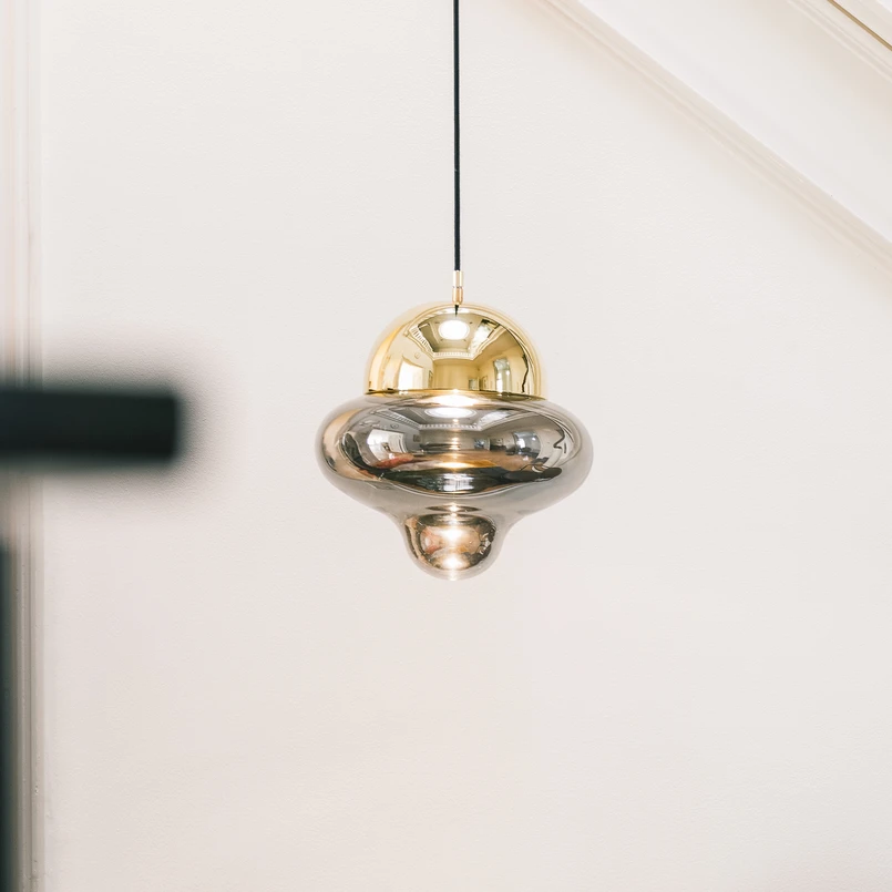 LED pendant light Nutty made of hand-blown glass and metal The LED pendant light Nutty is inspired by nature and the fine nuts of the oak tree - but still with the playful and unique style of DESIGN BY US. The warm white light produced by the integrated LED module spotlights like sunlight through the treetops, creating a very pleasant atmosphere. Nutty is made of mouth-blown glass and topped off with a dome made of painted metal. Danish design is traditionally orientated towards the wonderful shapes of nature - and DESIGN BY US used the oak nut as inspiration for this luxurious designer light.