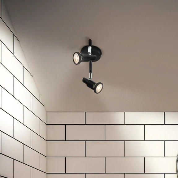 2-bulb GU10 spot downlight with dimmable LED reflectors The LED downlight Spot is made of steel with a matt surface finish and comes with two dimmable GU10 LED bulbs from OSRAM with a warm white light colour. The spots can be rotated and swivelled as desired thanks to the built-in ball joints. The mounting and connection accessories are included. Product benefits of the Spot luminaire series: - Timeless design and durability thanks to replaceable bulbs - Adjustable heads - High-quality housing with matt surface - Versatile customisation thanks to replaceable LED bulbs