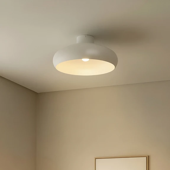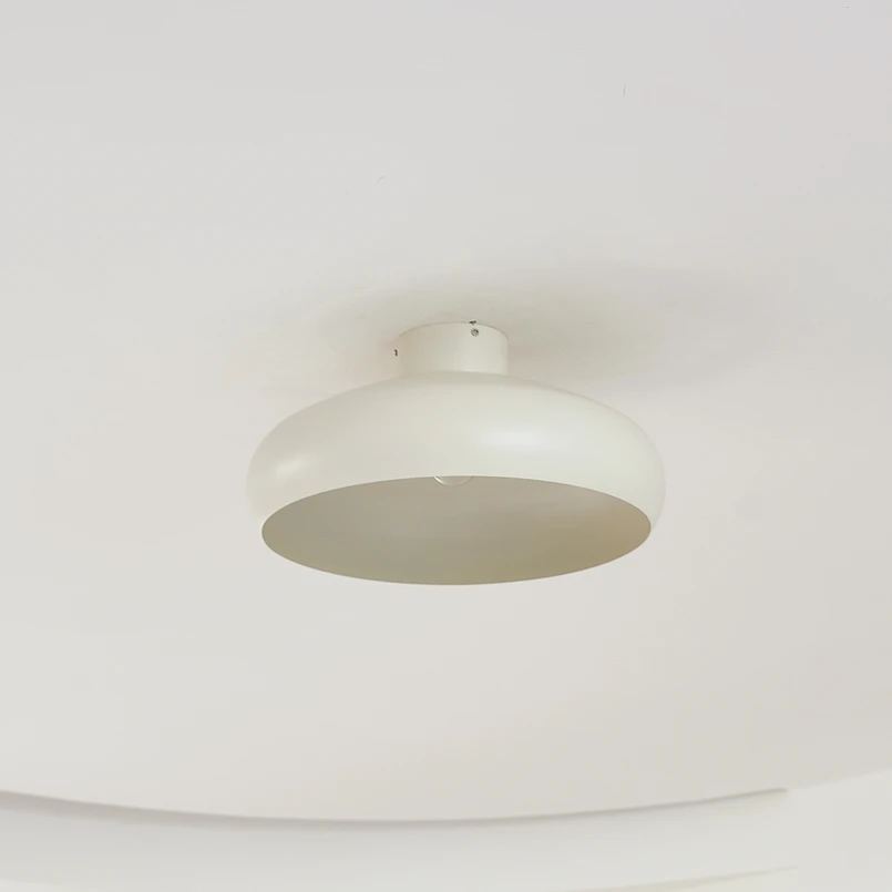 Beige-coloured, round Elover ceiling light The round Elover ceiling light is made of iron and is beautifully rounded. Its lampshade is open at the bottom and opaque, allowing all the light from the bulb to shine downwards and illuminate a large area. Its soft beige colour gives it an understated, classic look that can be combined with numerous furnishing styles.
