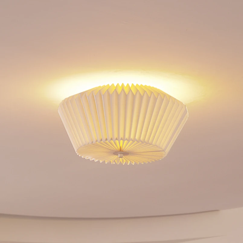 Magali ceiling light made of folded paper The Magali ceiling light with its folded, white lampshade not only brings light but also style to any room. Whether in the living room, bedroom or hallway, this light creates an atmosphere that can be both calming and energising. Although the ceiling light is not equipped with a dimmer, the brightness can be easily adjusted using an external dimmer to create the desired mood - can also be mounted as a wall light