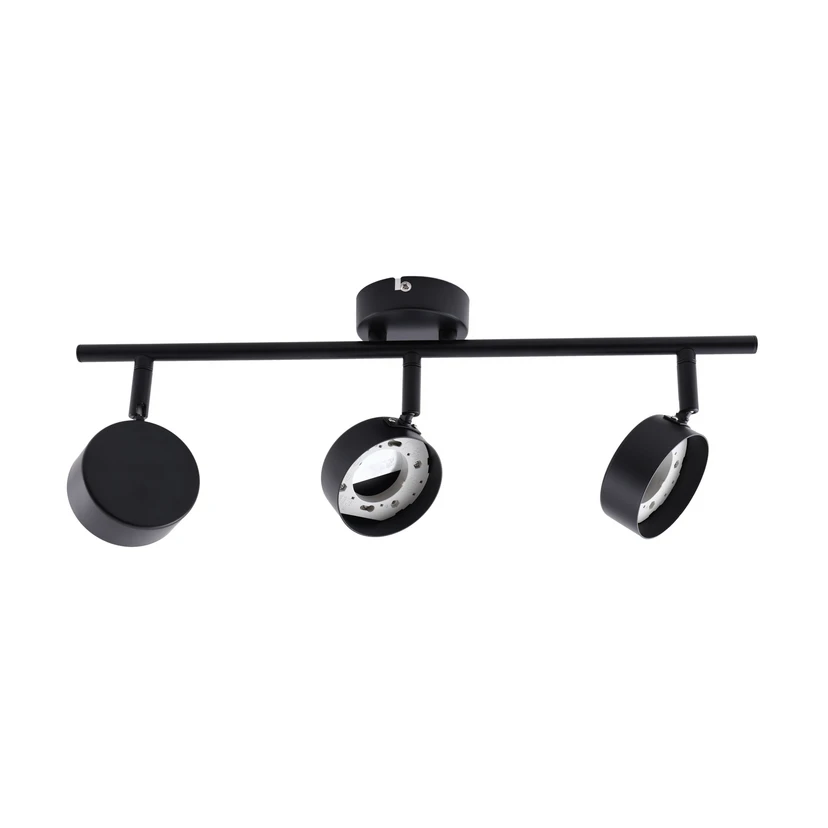 Jyla 3-bulb spotlight with adjustable lampshades, dimmable The Jyla 3-bulb downlight is made of iron and adds a sophisticated touch to the surroundings with its black exterior. At the same time, it blends effortlessly into different living areas thanks to its discreet design. For example, it is ideal for use as a light source in the hallway, kitchen, living room or dining room. The round lampshades are adjustable, allowing the light to be individually directed and the room to be optimally illuminated. The GX53 bulbs supplied have a curved lens and therefore look like glass hemispheres. The light can be switched on and off as usual using a wall switch. Thanks to the 3-step dimmable technology with integrated off function, it can also be dimmed to three different brightness levels by pressing the switch several times: 100 %, 50 % and 25 %.