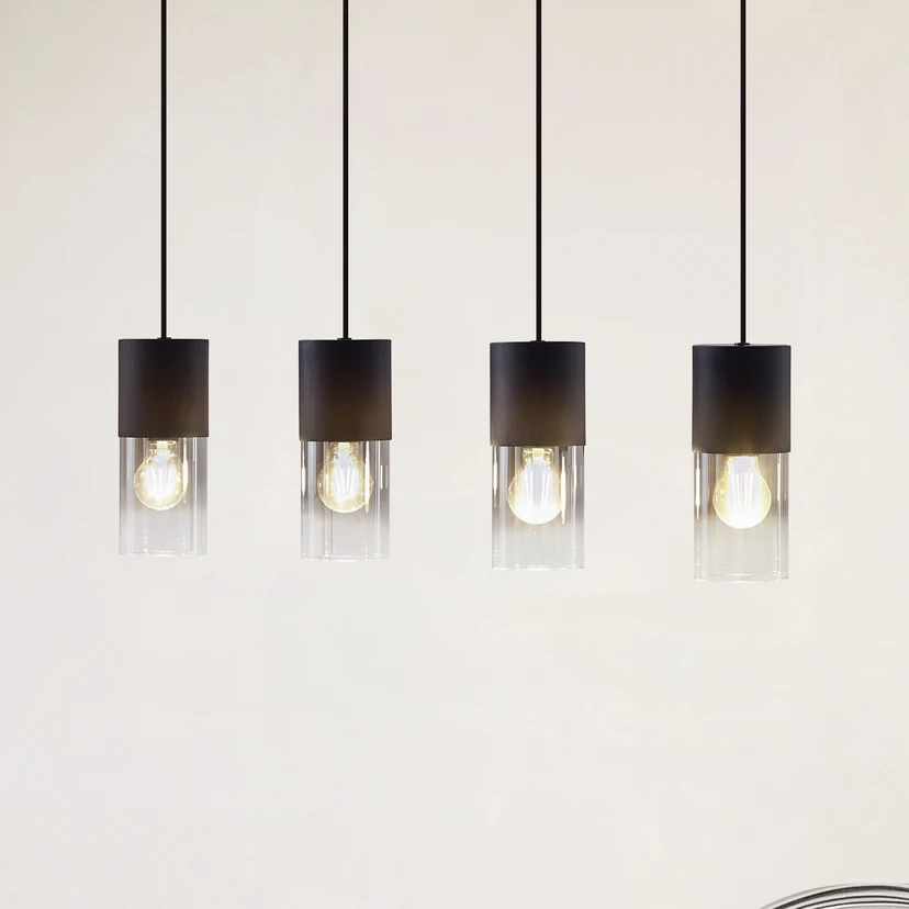 Lindby Svante 4-bulb pendant light, black, glass, 85 cm