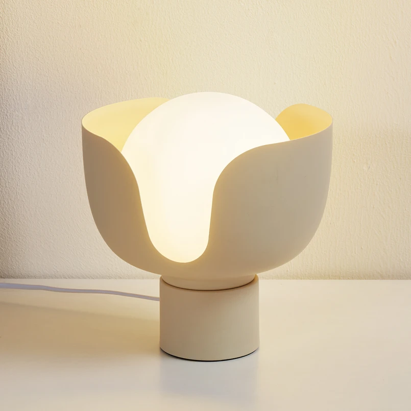 Fiora table lamp in a striking colour combination of beige and white - made of iron and glass Discover the Fiora table lamp, a masterpiece of design that blends seamlessly into modern and Scandinavian interiors. The carefully selected beige colour scheme harmonises with a variety of room concepts and adds stylish accents to living rooms, dining areas and bedrooms. Made of high-quality glass, this light not only promises pleasant light distribution, but also a long service life. Whether as a central element on a side table or as a discreet light source on a chest of drawers, this light is the perfect choice for lovers of clean lines and purist design.