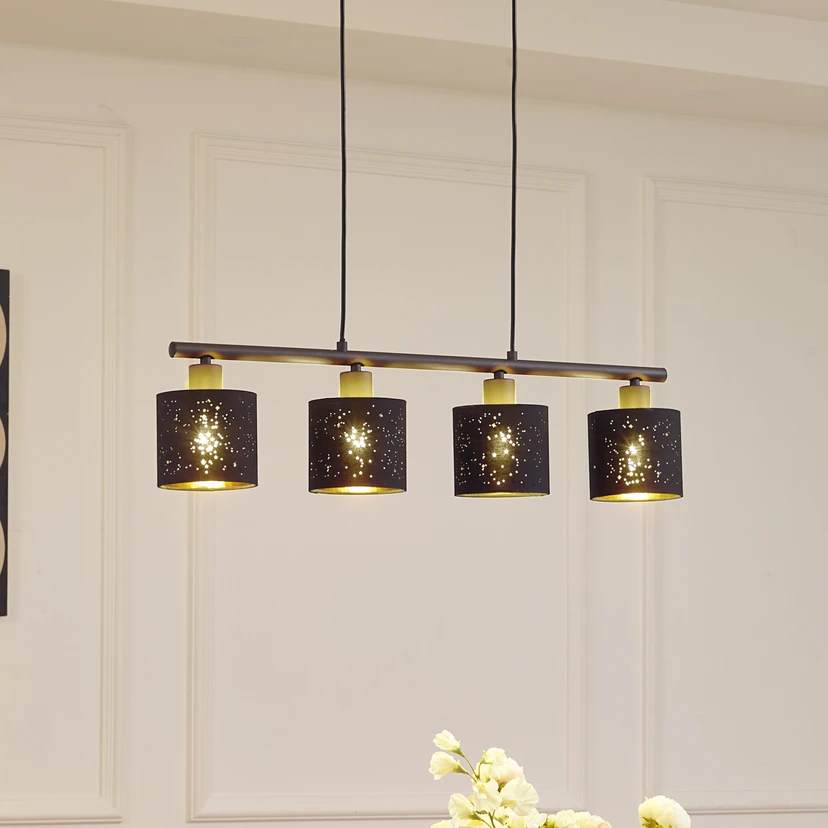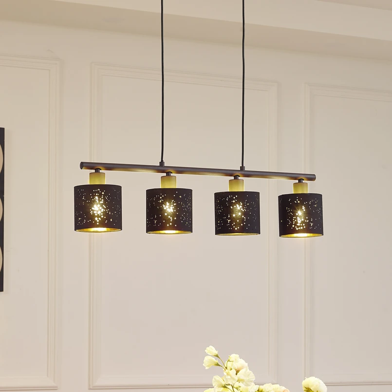 Lightness and radiance go hand in hand with the high-quality Vasilia linear pendant light, which features four lampshades arranged in a row to beautifully illuminate the dining table, but also looks great above the living area.