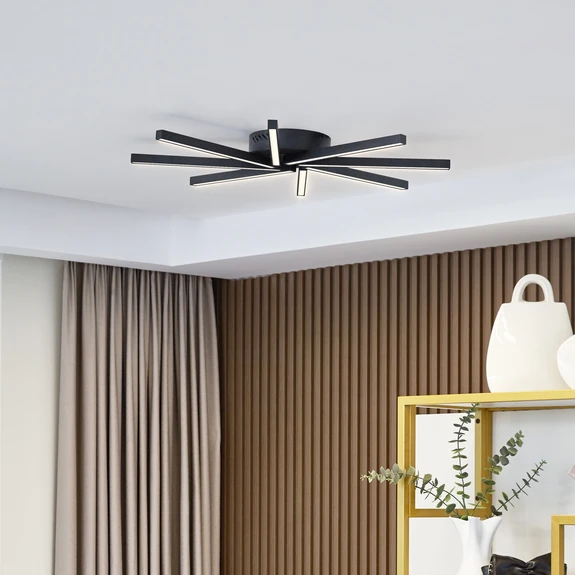Tjado 8-bulb LED ceiling light with dimmer function This ceiling light is the perfect choice for your four walls. The lamp complements your personal interior design concept thanks to its outstanding appearance and is also a great decorative element when switched off. Thanks to the dimmable option (10%, 50% and 100%), you can also use a wall switch to create cosy, feel-good lighting. Thanks to the warm white light colour, your living area is bathed in a great flair. The ceiling light is black in colour. With its beautiful design, this great ceiling lamp fits perfectly into your interior style and creates a cosy atmosphere. A convincing living feeling and tasteful design characterise this lamp in the usual quality of the Lucande brand. The overall look of your interior will be enriched by the lamp, which has quickly found the right place. This light exudes a wonderful mood.