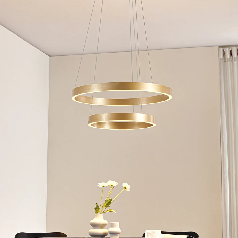 Lucande LED Pendant lamp Yonam, 2-flg., gold