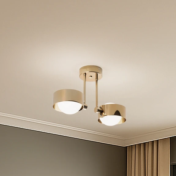 The Mado ceiling light combines modern design with high-quality materials such as steel and opal glass. This combination gives any room a stylish and contemporary atmosphere. The brass-coloured surface harmonises perfectly with the white glass, creating an elegant yet subtle look. The light is ideal for various living areas such as bathrooms, hallways, living rooms and bedrooms, offering flexible application options.