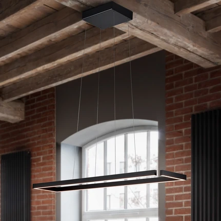 Rectangular LED pendant lamp Marisa, dimmable and with adjustable light colourThis LED pendant lamp can always meet individual lighting requirements. Its striking, rectangular shape radiates elegance and is perfectly complemented by practical functions. The angular profile is fitted with LEDs at the top and bottom along its entire length. This creates a top light as well as a bottom light, so that there is direct lighting downwards and indirect lighting upwards, which gently illuminates the room. The two light sources can be switched separately from each other thanks to the dual built-in gesture control. In addition, the light brightness can be regulated and the light colour can be set in the warm white colour spectrum. Besides these flexible functions, Marisa has the proven lift height adjustment system, which makes it child's play to change the suspension. The angular shape illuminates a large area of a dining table - this area can also be influenced by changing the height.- Height adjustable between 70 and 180 cmTo round off the modern and functional character, there are no visible screws in the ceiling canopy, which is attached with a magnetic holder.