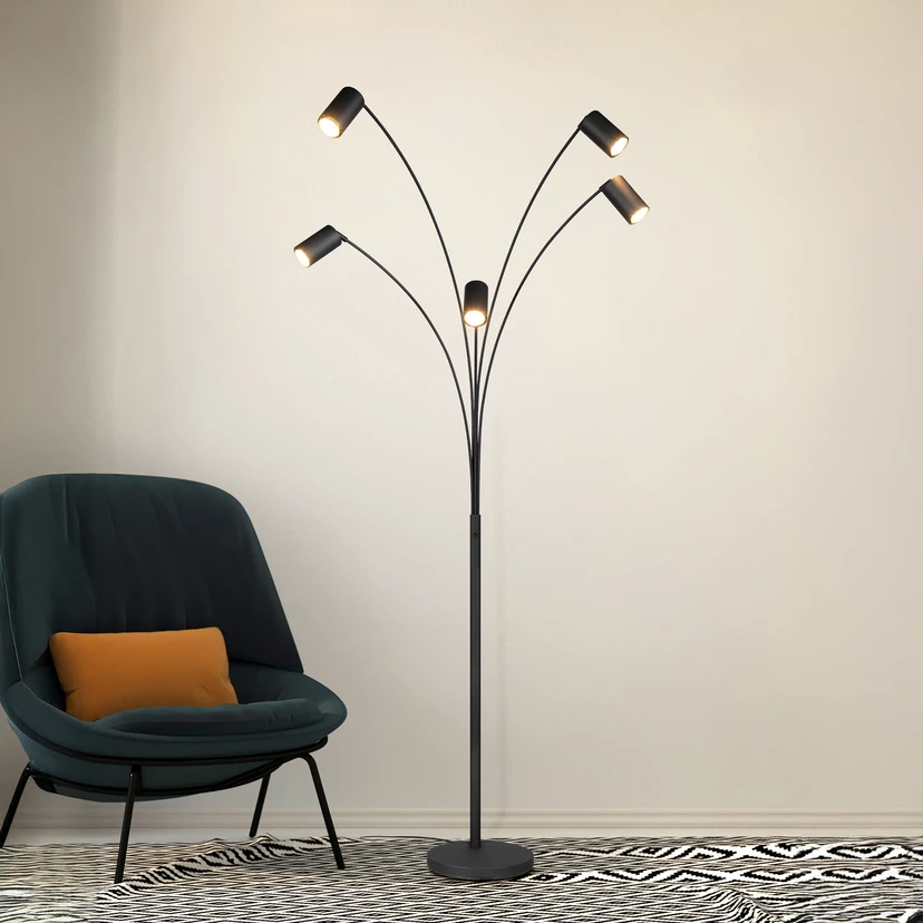 Marley floor lamp, black, height 200 cm, 5-bulb, metal