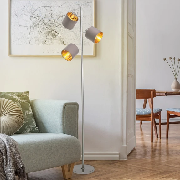 Maron floor lamp, three-bulb, fabric, brown/gold