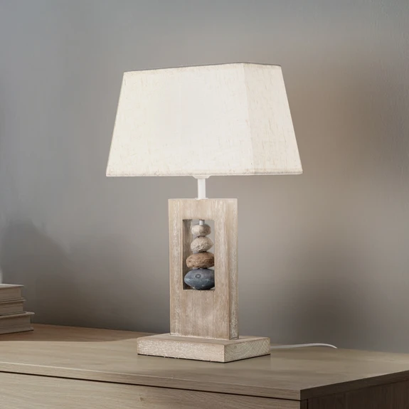 The Miriel table lamp combines Scandinavian elegance with the warmth of natural materials. Its design is characterised by a harmonious combination of light wood and beige textile, which gives every room a welcoming atmosphere. The use of resin complements the selection of materials and ensures a durable and robust construction. This light is ideal for living rooms and bedrooms, where it impresses with its stylish appearance and high-quality workmanship.