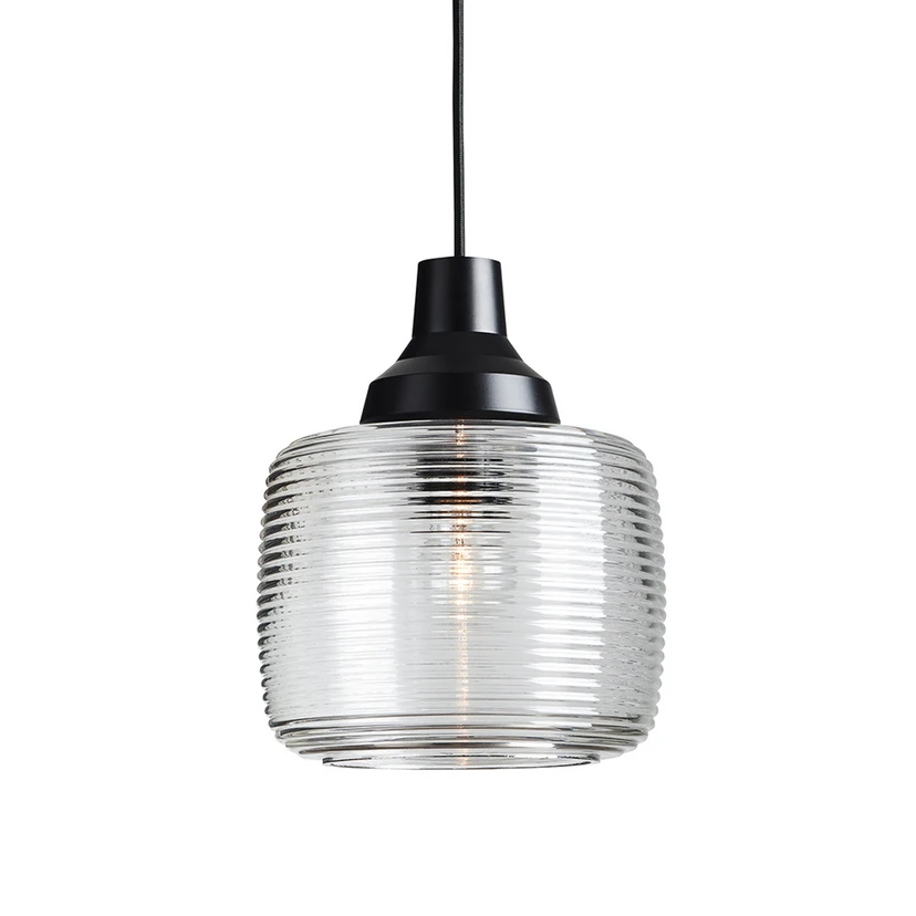 With mouth-blown glass lampshade: New Wave Stripe pendant light The New Wave Stripe pendant light has a classic shape. Its lampshade made of hand-blown glass also features a beautiful wave pattern. This not only looks good, but also creates a beautiful interplay of light and shadow on the wall or ceiling. The light is also emitted directly downwards through the opening, making New Wave Stripe ideal for use above the dining table. The socket for a freely selectable E27 bulb (not included, see accessories) is located inside the lampshade. New Wave Stripe is the modern interpretation of a classic, elegant pendant light from DESIGN BY US and is also very suitable for use in the hospitality industry. Note: Each light made of mouth-blown glass is unique. Inclusions in the glass (bubbles) up to 0.5 cm in size are possible.