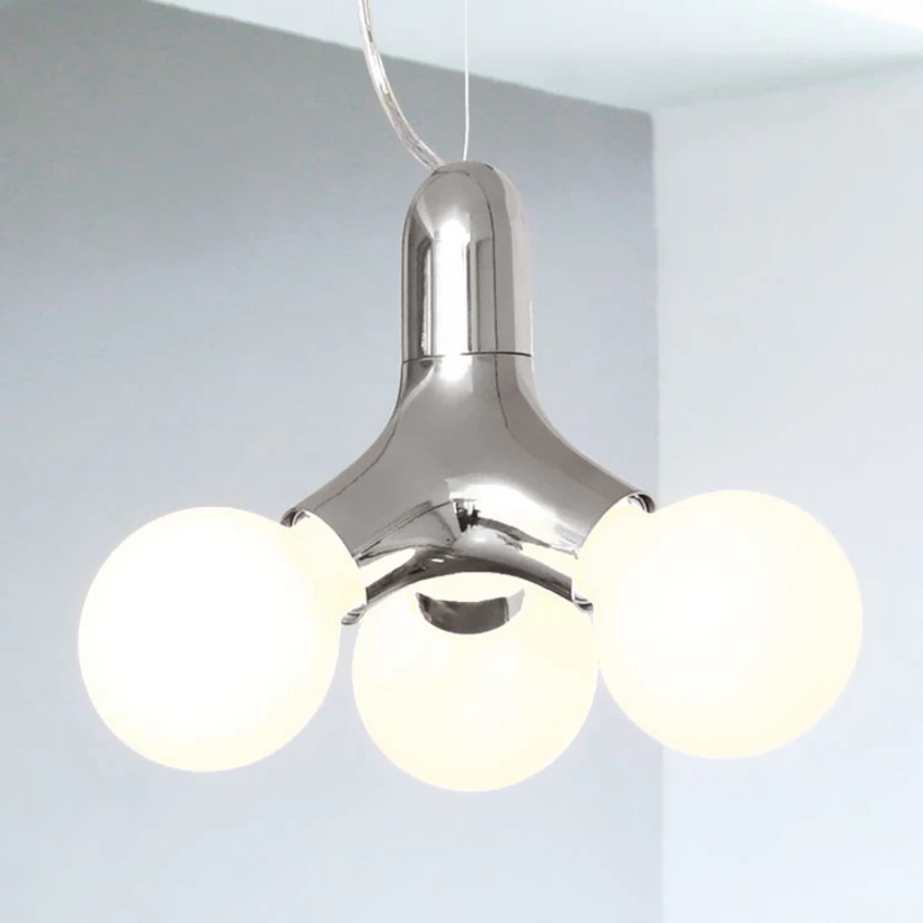 It is clear from the name and shape of the light that the designers Hopf and Wortmann based this series of lights on the structural model of a DNA molecule. The model DNA Single is the smallest model in the series of hanging lights and consists of three “atoms”, which are represented by globe bulbs (not included). The designer light manages without lampshades, which means that you should pay particular attention to the choice of light bulbs, so that they go with the light visually.