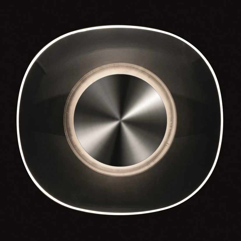 Glass wall light with shiny chrome element in the centre: Yolk Yolk, the English word for yolk, says almost everything about this designer light. It looks not entirely unlike a fried egg. In the centre is the wall mounting and a round, shiny chrome element, with a ring of hand-blown glass around this central point. The bulb is not visible and emits a very diffuse, indirect light, making Yolk perfect for creating cosiness and comfort. The Italian designers Angeletti & Ruzza developed Yolk for the lighting manufacturer Oluce. The long-established company works with renowned designers from all over the world. The lights designed for Oluce have already won countless awards and some of them are already modern classics.