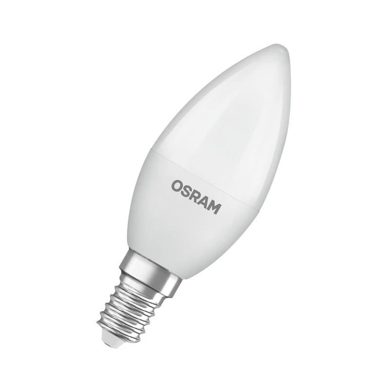 Made from recycled plastic: OSRAM Classic Star LED bulb, E14, 3.3 W, 4,000 K The Classic Star LED bulb with E14 base in a popular candle shape produces cool white light and also impresses with both its classic size and matt surface. As there are no UV or near-infrared components in the light beam, this bulb is ideal for illuminating heat-sensitive objects such as food or plants. Classic Star is made from at least 40% recycled plastic, produces 100% light immediately without warm-up time and is a universally applicable LED bulb.