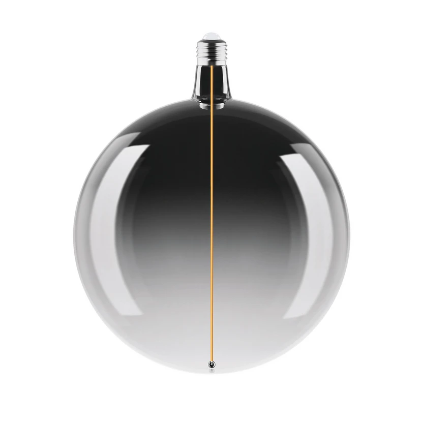 Vintage Big Globe E27 LED bulb 4.8 W 1,800 K, smoky grey tint, dimmable This bulb from the Vintage Big series impresses with its great effect in any socket. The dimmable LED bulb emits extra warm light, is a visual highlight thanks to the special filament magnet technology without a filament holder and the smoky grey tint, making it perfect for decorative installations.