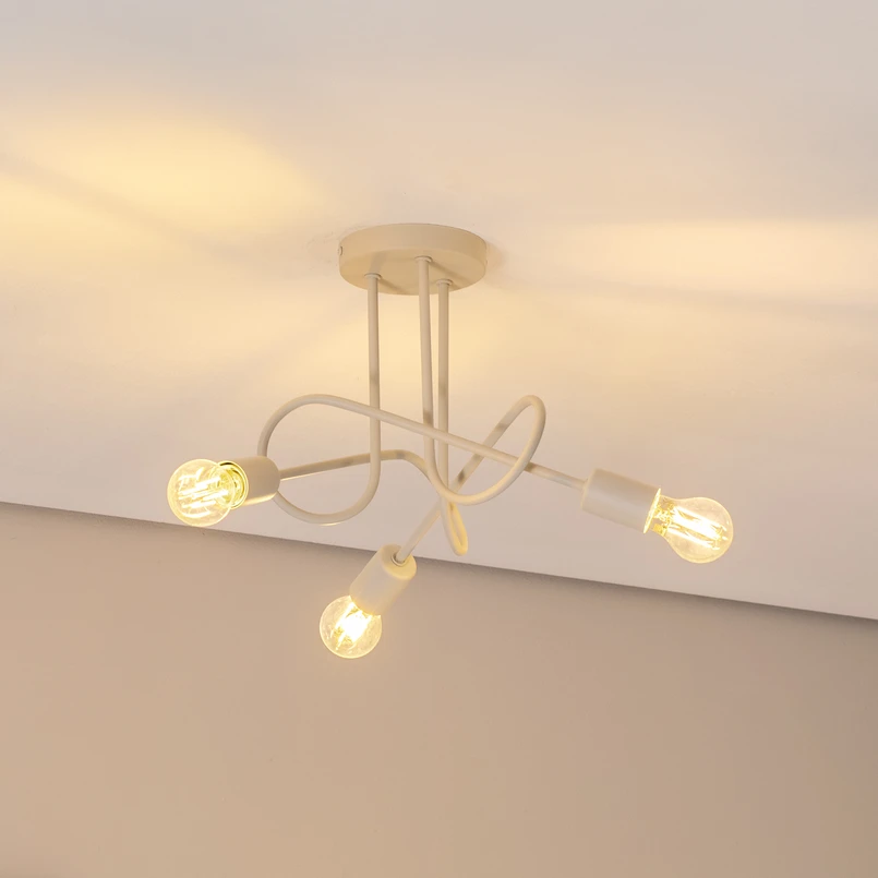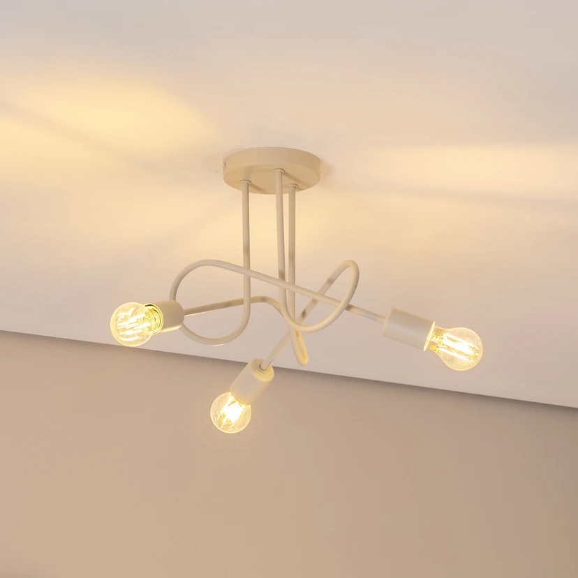 The Oxford ceiling light made of metal combines stylish design with functional lighting. The three arms extend downwards from the round canopy into the room, intertwined like a loose knot.