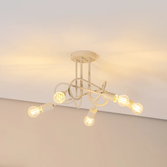 The Oxford ceiling light made of metal combines stylish design with functional lighting. The five arms are intertwined and extend downwards from the round canopy in different directions, ensuring that even large rooms are brightly lit in every corner with this ceiling light.