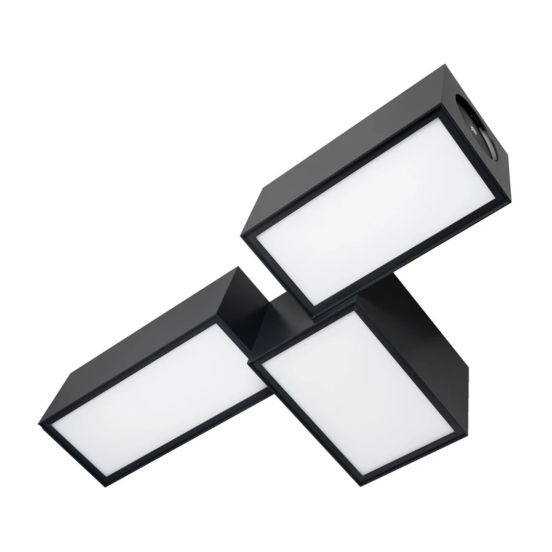 Modern LED ceiling light Stella with Ozonos AC-1 Plus air purifier The Stella ceiling light has a contemporary look in the form of three Quaders. The downward-facing surfaces are equipped with satinised diffusers that spread the light from the integrated LEDs evenly. Depending on the connection, the light output can be controlled externally; this is possible via DALI, DSI, switchDIM, corridorFUNCTION or Casambi (module required). But Stella is not just a ceiling light; it is equipped with an integrated AC-1 Plus air purifier that is invisible from the outside. This draws the room air into the Innes, uses UVC radiation to generate O3 molecules, which enrich the air and ensure a low ozone concentration in the room. With its strong oxidising effect, the odourless gas eliminates odours, aerosols and allergens as well as bacteria, viruses and fungi, thus ensuring pleasant and healthy air quality. The Stella LED ceiling light with AC-1 Plus is not only suitable for direct lighting and effective, rapid air purification in private interiors, but also in surgeries, hairdressing and beauty salons, waiting and break areas, commercial and retail spaces.