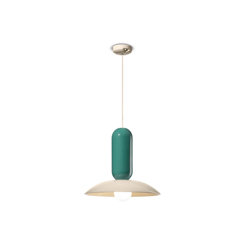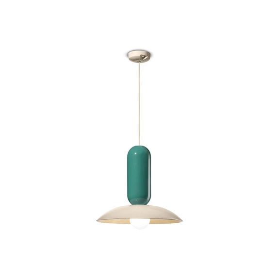 Two-coloured ceramic pendant light Pau The Pau pendant light makes an exclusive impression: The visual focus is on the design of the lampshade and suspension system in different colours. This colour contrast gives the Pau pendant light, which is ideal for ambient or area lighting, a very fresh look. Also an excellent choice for table lighting - externally dimmable - made in Italy