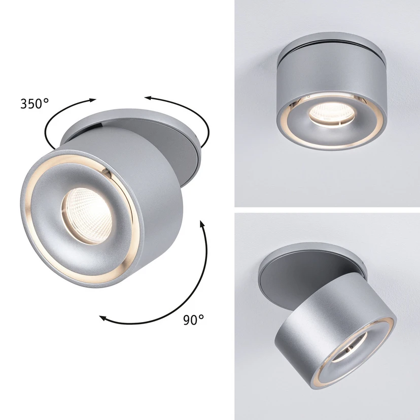 Spircle LED recessed light with flexibly movable head Spircle not only impresses with its modern, industrial design, but also with its high degree of flexibility in terms of light direction: the head can be rotated by 350° or swivelled by 90°. This allows the light cone to be directed exactly where it is needed and special areas in the room, such as decorative pieces of furniture or paintings, can be specifically illuminated and perfectly emphasised. Can be combined with numerous interior styles - Beam angle: 36°