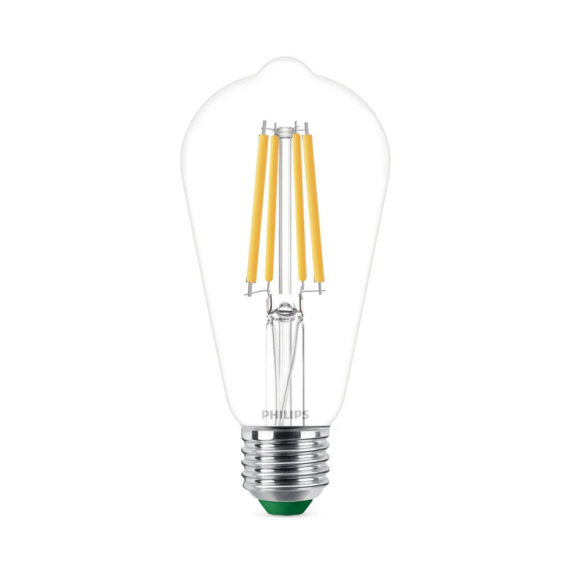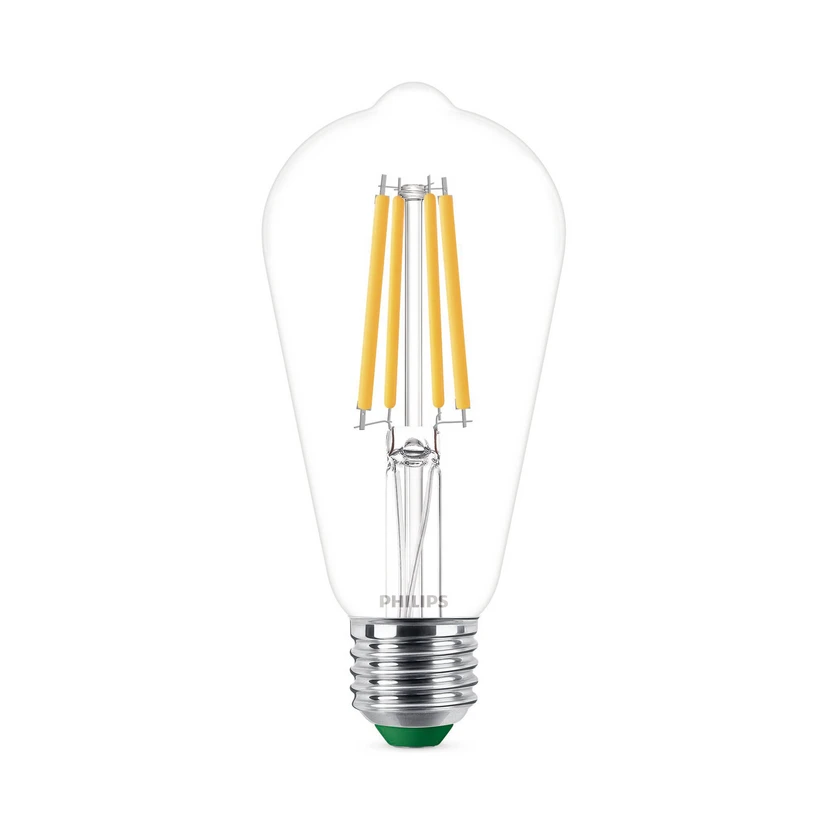E27 LED rustic lamp with clear glass bulb and 4 W, 840 lm, 2,700 K This clear 4 W E27 LED filament lamp in rustic shape offers warm white light and serves as a long-lasting, energy-efficient replacement for conventional 60 W incandescent lamps. Non-dimmable. Ultra-efficient - excellent luminous efficacy with 210 lm/W.