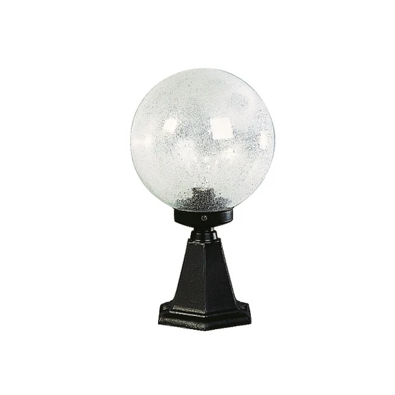 Beautiful pillar light I with spherical bubble glass The pillar light I is optionally available in black or white and has a cast aluminium body. It is designed in an angular, conical shape. A spherical glass sits on the base as the body. This bubble glass creates a veiling effect and helps to protect against glare. At the same time, the light is emitted brightly. In this way, the 43.5 cm high light can illuminate the surroundings close to the floor and also serves well as a night-time orientation light for visitors. The angular base can be mounted directly on foundations and paved paths. This makes it perfect for marking out paths. If it is to be positioned on movable ground, a ground mounting base should be purchased (see accessories). IP code IP44 makes the light robust against moisture. Pillar light I is an ideal lighting accessory for front gardens or paths. It appeals with its simple spherical design on a rustic base. German brand light.