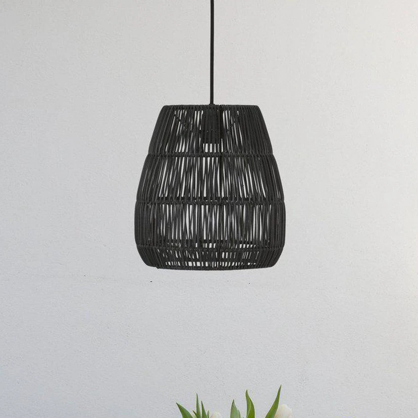 Lighting accessory for balconies and terraces: PR Home outdoor hanging light Saigon The PR Home outdoor hanging light Saigon lets you experience the transformative power of light. Specially designed for outdoor use, this light with its long 250 cm cable offers maximum flexibility when designing outdoor areas. Its polyrattan lampshade is woven and has an appealing, natural look. Polyrattan is a durable material that can withstand wind and weather. The woven structure creates a beautiful light and the pendant light is not only a lighting element, but also a stylish accessory that adds a special atmosphere to any outdoor area. With the UK plug, it is specially designed for use in the UK market