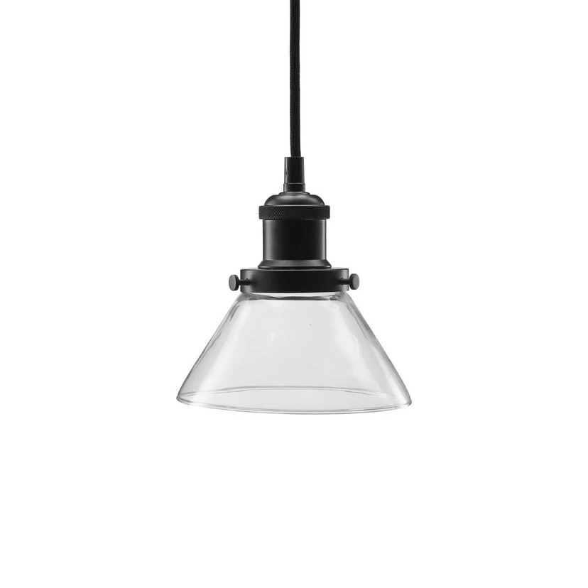 Elegant August glass pendant light with cable and plug The August pendant light, with its cone-shaped lampshade, is made of glass and is a stylish addition to any dining area or kitchen island. Its design creates an atmosphere that invites both relaxed dining and creative cooking sessions. The smooth glass structure catches the light in a unique way and provides comprehensive general lighting. This makes the hanging light an example of how carefully selected lighting elements can influence the room atmosphere, combining both functional and aesthetic aspects. Installation is straightforward thanks to the plug supplied, allowing flexible placement in the room. The black textile cable is 3 metres long and has a switch.