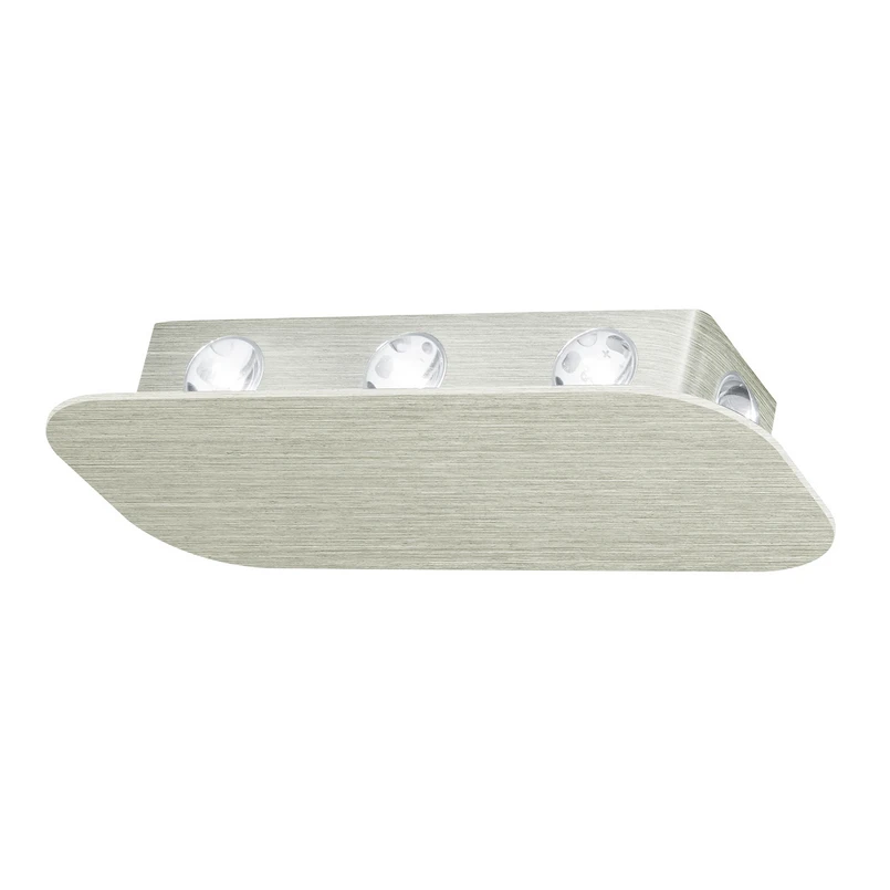 Eight-light LED wall lamp Prince made of anodized metal - protection class IP54The elongated LED wall lamp Prince with the rounded corners is made of anodized aluminum and withstands adverse weather conditions thanks to protection class IP54, so that nothing stands in the way of its use outdoors, for example as facade lighting next to the entrance door. Also hallways and rooms indoors Prince decorates with its charming light accents, which are created by the arrangement of the LED light sources - three each on the top and bottom and one each on the sides.Visually, the LED wall lamp Prince harmonizes with numerous furnishings and facade styles.
