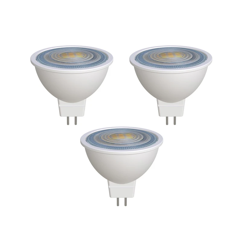 GU5.3 7.5W polycarbonate LED bulb, white, in a practical set of 3 This LED bulb is suitable for numerous lights with a GU5.3 socket. It is made of polycarbonate and can be used flexibly thanks to its white colour - not dimmable - 7.5W - 621 lumens - beam angle 36° - supplied in a set of 3