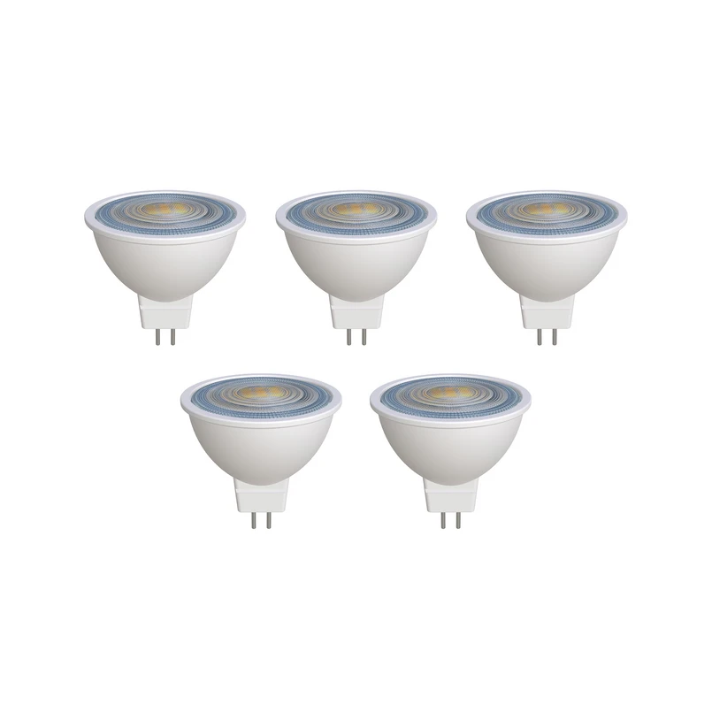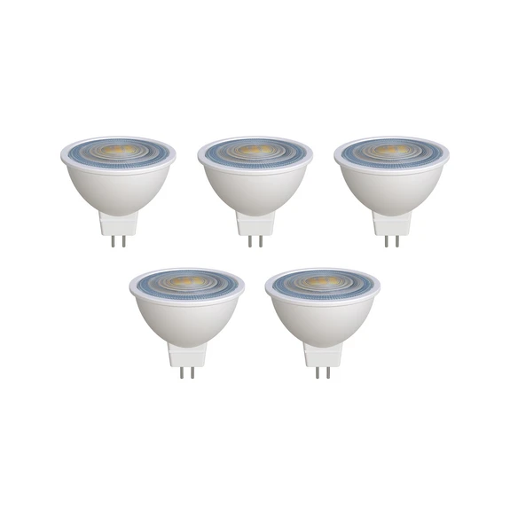 GU5.3 7.5W polycarbonate LED bulb, white, in a practical set of 5 This LED bulb is suitable for numerous lights with a GU5.3 socket. It is made of polycarbonate and can be used flexibly thanks to its white colour - not dimmable - 7.5W - 621 lumens - beam angle 36° - supplied in a set of 5