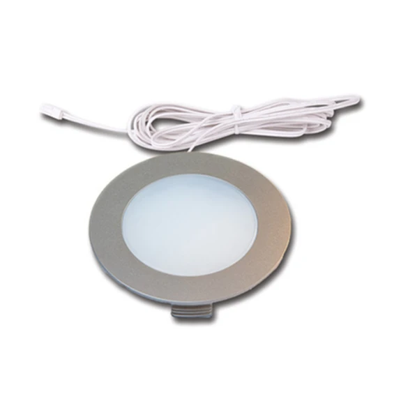 Simple, elegant, timeless: the FR 78-LED recessed luminaire in a set of 3These three attributes describe this recessed luminaire perfectly. The simple design combined with high-quality workmanship results in a modern and timeless luminaire that can be used in many areas.Appearance and material of the recessed luminaireThe basic shape of the three luminaires is a circle. In the centre of each luminaire there is a white cover mounted in front of the LED. Around this circle in the middle is the stainless steel coloured ring made of plastic.The LED technology of the luminaireThe LEDs work very efficiently and emit a warm white light. The low heat development and the IP44 protection against splash water as well as dust also allow the use in the bathroom.