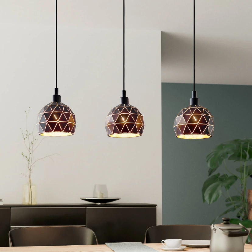 The Roccaforte hanging light in black and gold transforms the atmosphere of a room. This light is not just a lighting element, but also a statement of style and elegance. Whether in the living room, dining room or kitchen, Roccaforte creates an atmosphere that is both cosy and stimulating. The combination of black and gold adds a touch of luxury to any room and provides warm, inviting lighting.
