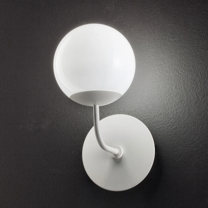 In round design - LED wall lamp Sfera with spherical glass shadeThe LED wall lamp Sfera is composed of a round wall plate, a thin luminaire arm and a spherical glass shade enthroned on top, which is not only responsible for a glare-free light but also for a particularly uniform light pattern thanks to its satin finish and spherical shape. The light is generated by an LED in the shade, which emits a pleasant warm white light and can also be dimmed as required via the house connection.