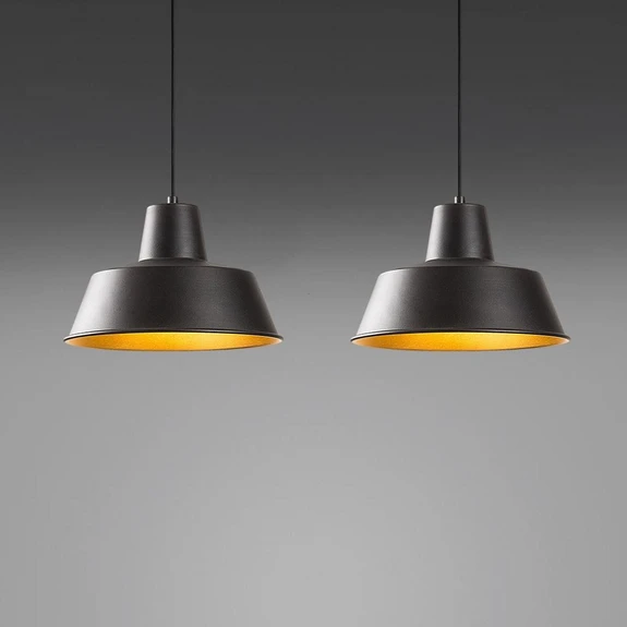 Saglam 3738 pendant light, black/gold, metal, 2-bulb