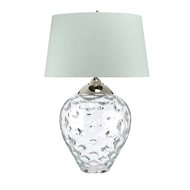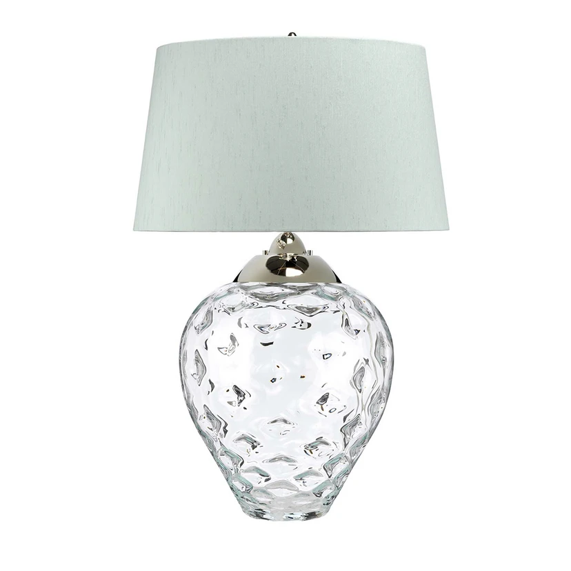 Samara designer table lamp with illuminated glass base The Samara table lamp is an effective light source for mood lighting in living rooms and bedrooms. Its lampshade is made by hand from artificial silk and is illuminated by a lamp with an E27 base, while the transparent glass base is illuminated by an integrated LED bulb with a GU10 base. The light sources can be switched separately or together using the 4-way switch built into the cable.