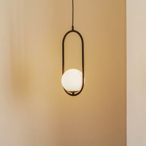 The Samba pendant light combines modern design with high-quality materials to create a stylish ambience in any room. Made of glass and metal, the light presents itself in an elegant combination of opal white glass and black and brass-coloured accents. This harmonious colour scheme makes it an eye-catching feature in living rooms, kitchens and dining rooms. The light is 1-bulb and provides targeted lighting that bathes the room in a pleasant light.