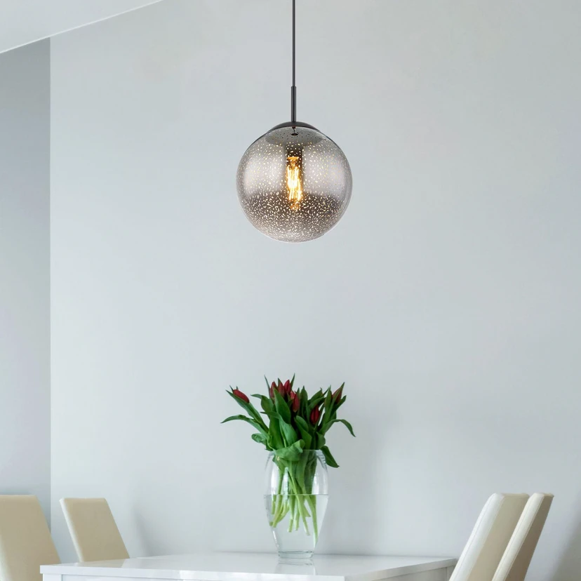 Samos pendant light, Ø 20 cm, smoky grey/black, glass