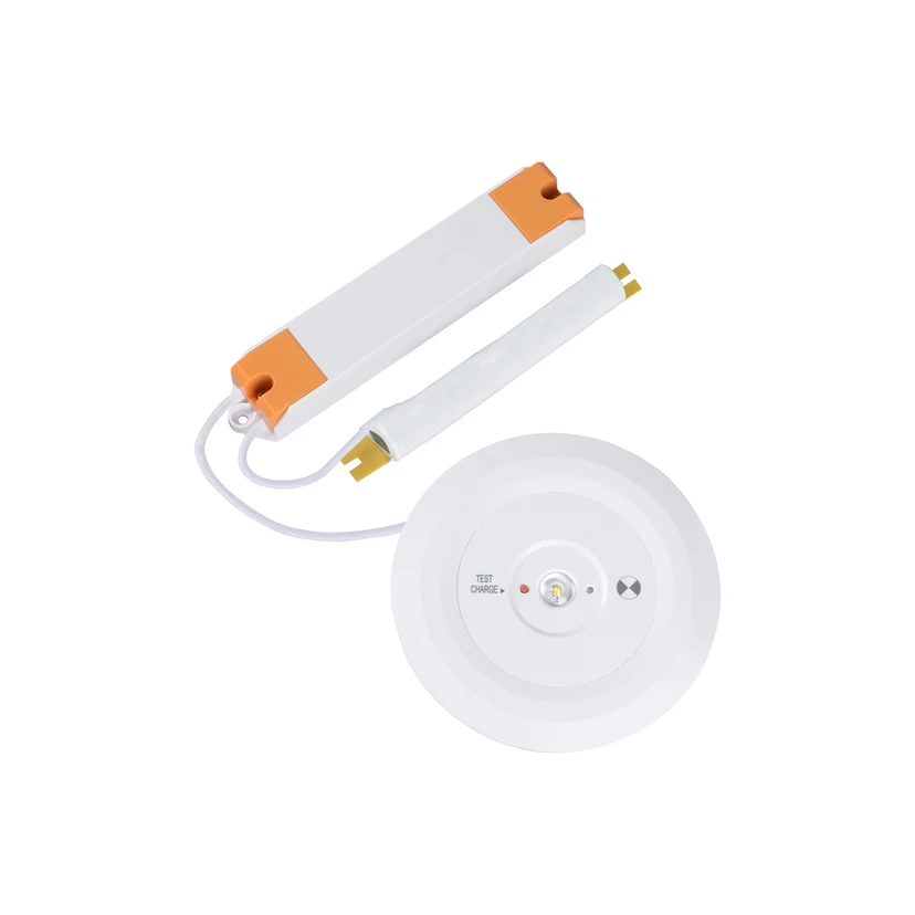 Ledino 5.5 W LED emergency exit light Schleswig for recessed installation This emergency exit light is a round, discreet recessed light that is equipped with an external rechargeable battery and power supply unit. It has standby and permanent switching. The LED light shines with 6,500 Kelvin, which is particularly cool and bright - LiFePO4 battery 3.2 V/3 Ah (replaceable) - Operating time: 180 minutes - Impact resistance IK05 Only lights in an emergency. An additional switch can also be connected.