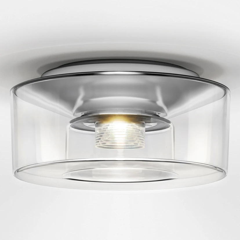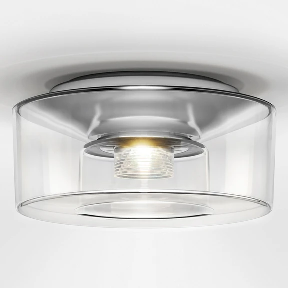 LED ceiling lamp Curling S with cylindrical shade The LED ceiling lamp Curling S perfectly combines the sustainability of the latest LED technology with a timeless elegant shape. The fine shade is designed in a flat cylindrical shape and sits on the polished aluminum housing. The module with the latest LED technology sits in a reflector made of polycarbonate. The shade can be mounted without tools thanks to a bayonet lock. The interaction of the individual design elements makes it possible to create the perfect light emission and lighting mood for any room situation with the Curling LED ceiling light. An optical insert, which is attached with two small magnetic points directly under the LED illuminant, provides with its special cut for downward directed, soft and glare-free light.Private rooms as well as object areas can be equipped with the LED ceiling light Curling S - depending on the room design as a single luminaire or arranged in rows/groups. The area of application of the luminaire is absolutely diverse: in corridors, entrance areas and lounges, Curling S provides suitable general and area lighting in offices, hotels, restaurants, practices and many other areas of application.The design of the Curling luminaire series comes from Jean-Marc da Costa and Manfred Wolf, the founders of serien.lighting. The company designs and produces intelligent lighting solutions with a reduced-modern design and sophisticated lighting effects.- externally TRIAC-dimmable (phase dimmer)- good color rendering: CRI > 90