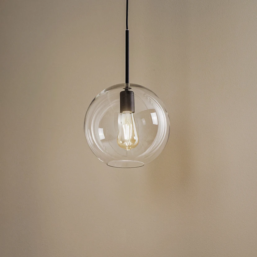 The Sphere L pendant light with glass shade combines modern design with high-quality materials such as glass and steel. Manufactured in Europe, this light impresses with its transparent and black colour scheme, which can be seamlessly integrated into various interior styles. Particularly suitable for living rooms, hallways and dining rooms, it creates a welcoming atmosphere and adds stylish accents.